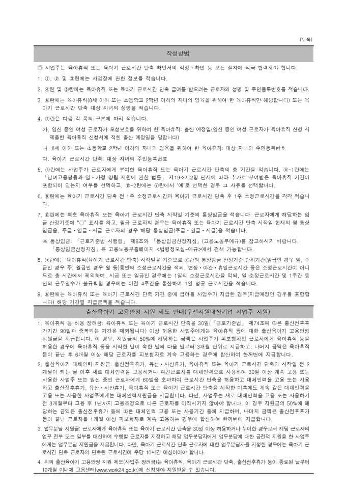 9,000원/월육아휴직 확인서 서식입니다. 「고용보험법」 제71조ㆍ제74조제2항 및 같은 법 시행규칙 제118조에 따라 육아휴직(육아기 근로시간 단축) 사실을 확인하고자 할 때 사용할 수 있는 서식입니다. 고용보험법 시행규칙 [별지 제102호서식] <개정 2025. 2. 21.>