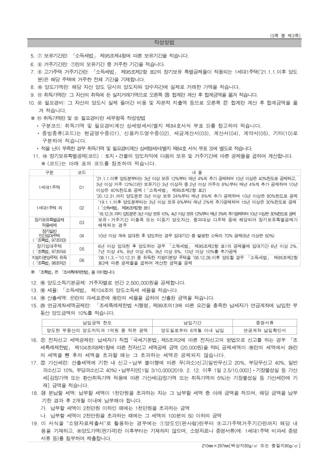 9,000원/월양도소득세 간편신고서(소명자료 제출서)(예정신고, 확정신고, 기한 후 신고, 소명자료 제출서) 서식입니다. 「소득세법」 제105조(예정신고)ㆍ제110조(확정신고)ㆍ「국세기본법」 제45조의3(기한 후 신고)에 따라 양도소득세를 신고할 때 사용할 수 있는 서식입니다. 소득세법 시행규칙 [별지 제84호의4서식] <개정 2025. 3. 21.>