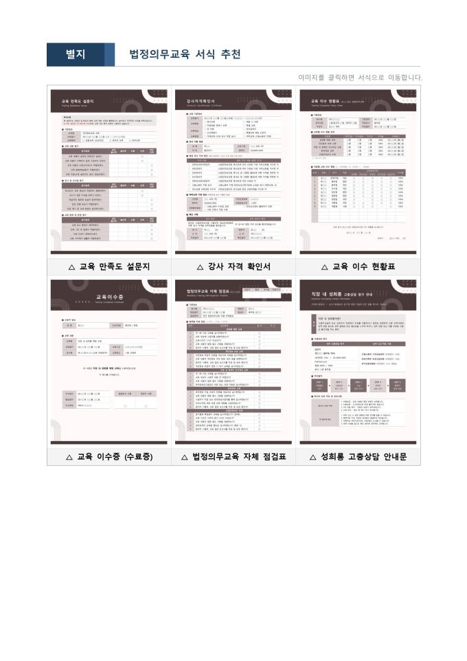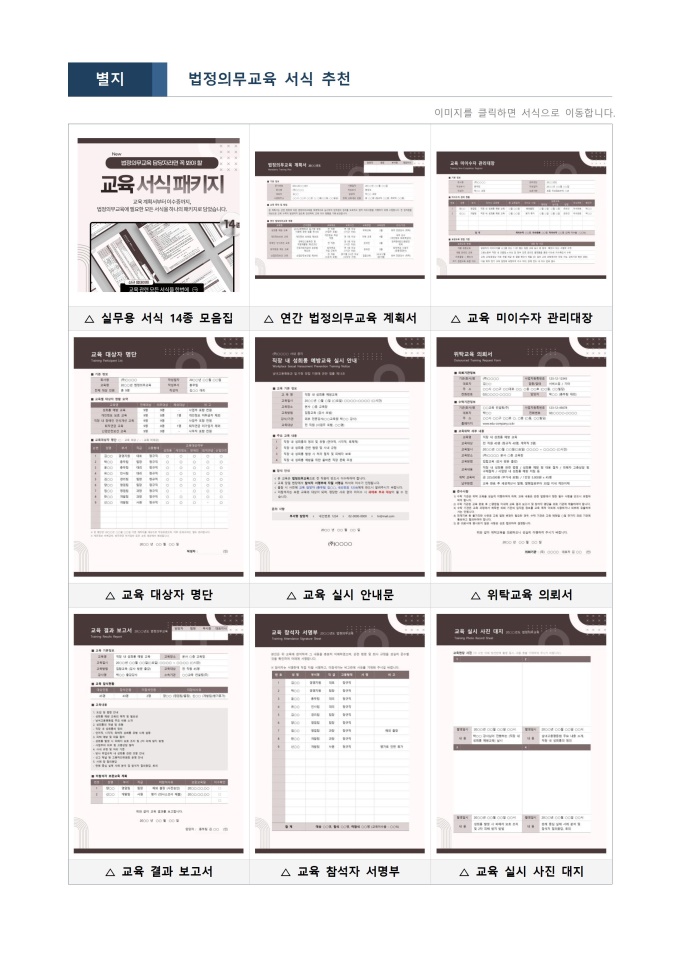 전 업종 공통 사용 가능, 5인 이상 사업장, 법정의무교육 관리 체계를 구축하려는 중소기업 또는 스타트업, 인사총무 담당자가 교육 일정을 통합 관리하는 모든 사업장