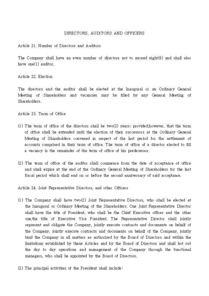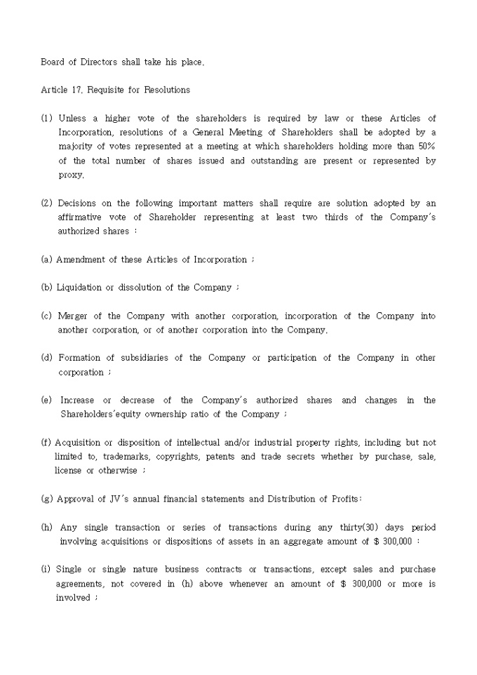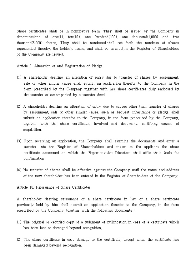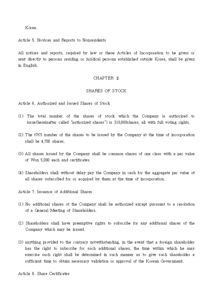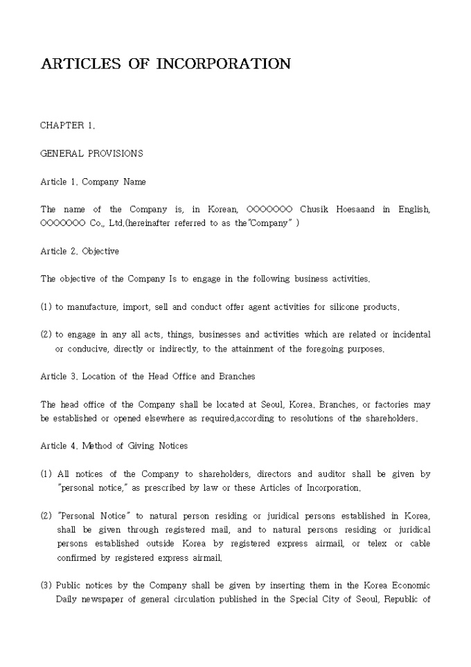 9,000원/월ARTICLES OF INCORPORATION 영문으로 된 정관입니다.