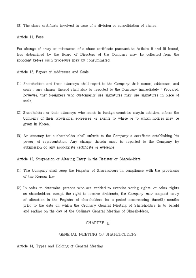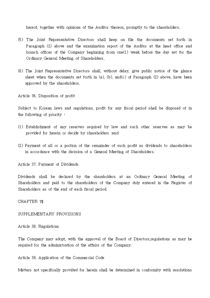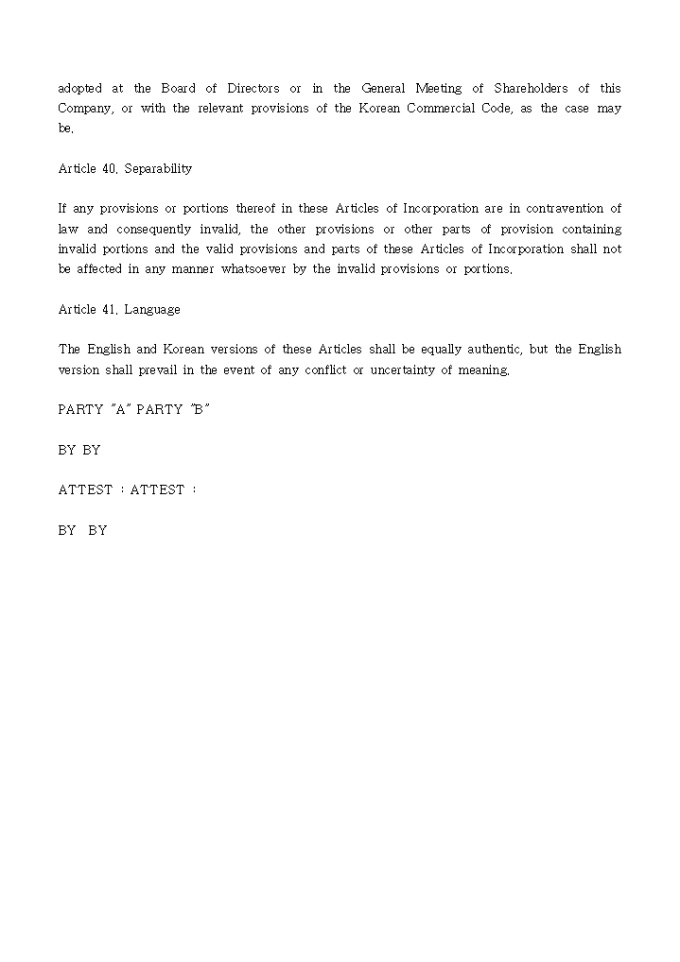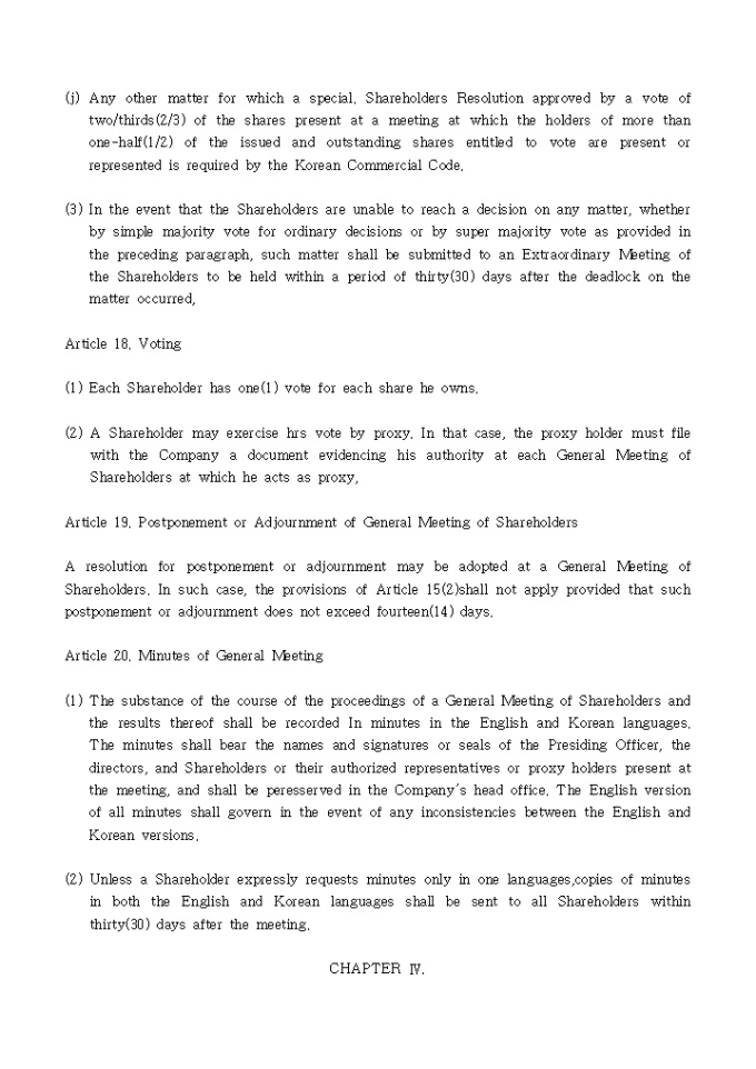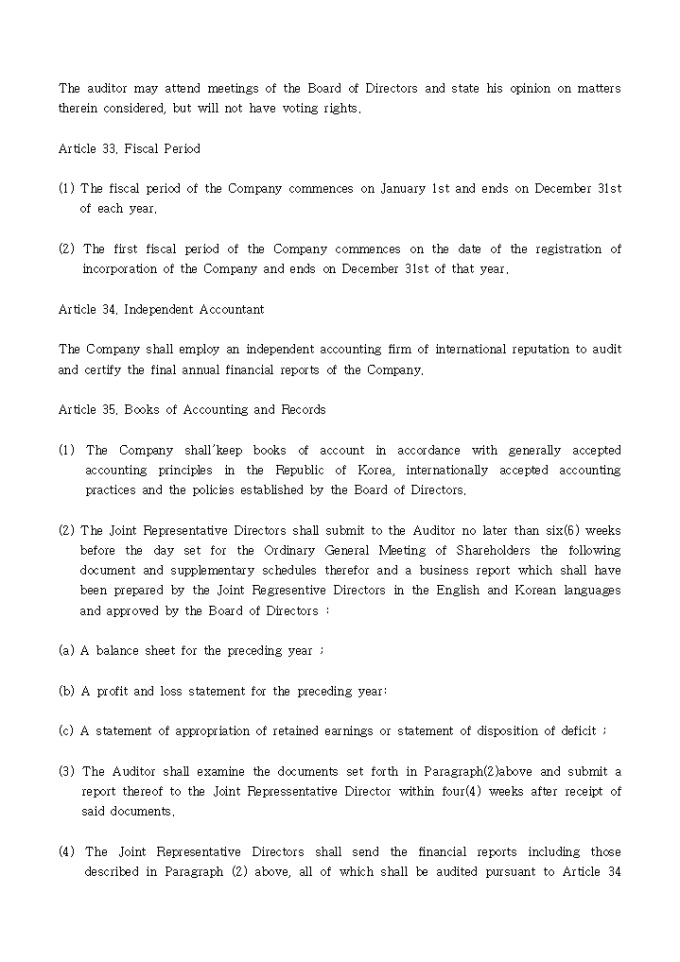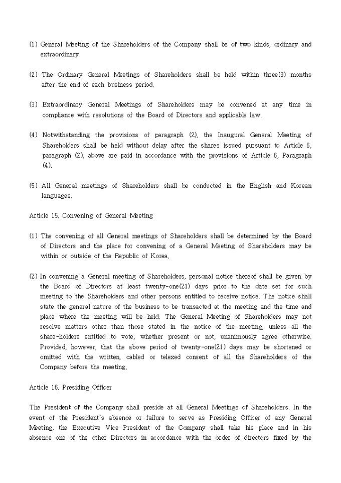 9,000원/월ARTICLES OF INCORPORATION 영문으로 된 정관입니다.