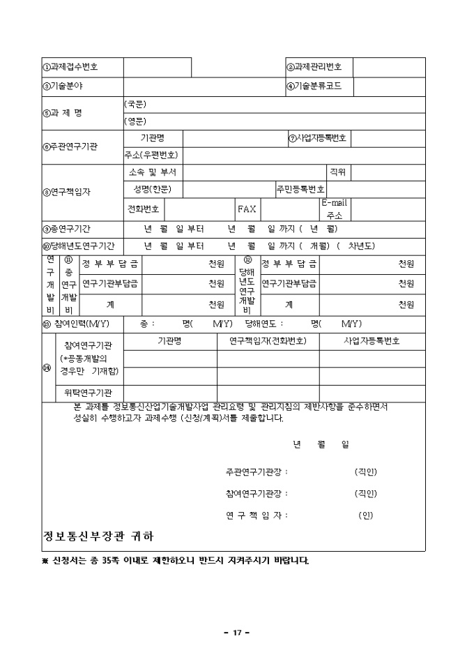 9,000원/월사업계획서(정보통신산업기술개발사업) 양식입니다. [목 차] Ⅰ. 사업계획 안내 Ⅱ. 과제수행(신청/계획)서 작성요령 Ⅲ. 과제수행(신청/계획)서 양식 Ⅳ. 지정공모과제 및 제안요청서 Ⅴ. 연구개발비 산정기준 Ⅵ. 정보통신산업기술개발사업 관리요령
