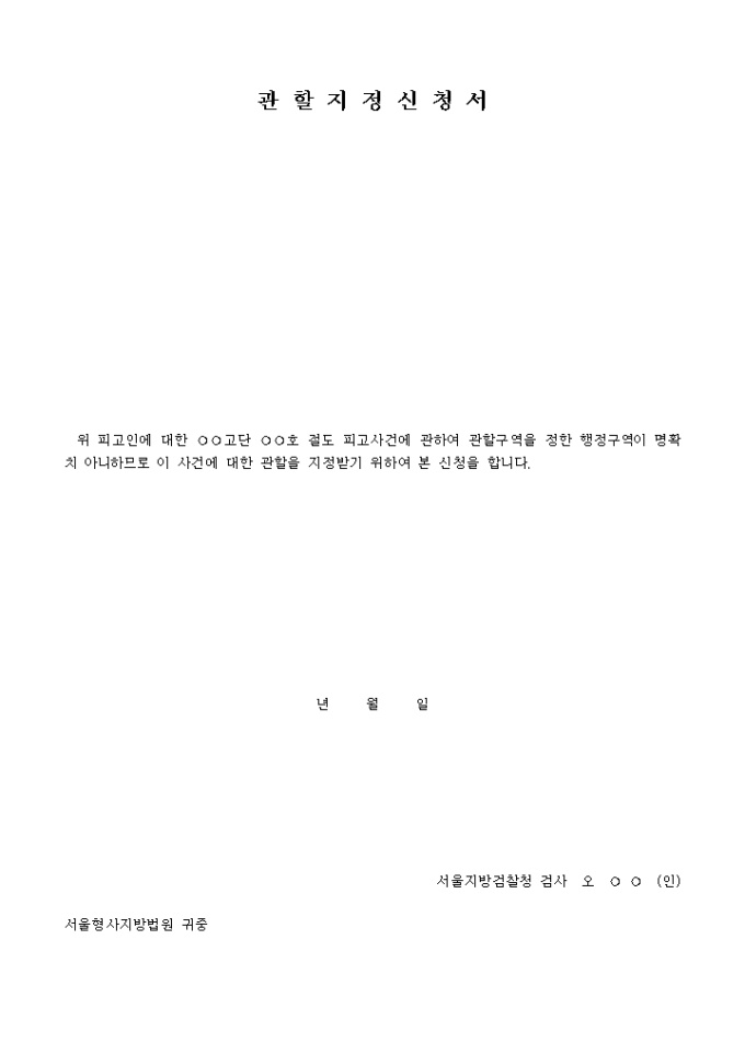 9,000원/월관할지정신청서 입니다. 위 피고인에 대한 고단 호 절도 피고사건에 관하여 관할구역을 정한 행정구역이 명확치 아니하므로 이 사건에 대한 관할을 지정받기 위하여 본 신청을 합니다. ...
