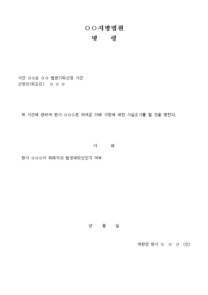 9,000원/월명령(사실조사명령) 입니다. 위 사건에 관하여 판사 ○○○로 하여금 아래 사항에 대한 사실조사를 할 것을 명한다. 아 래 판사 ○○○이 피해자의 법정대리인인지 여부 ...