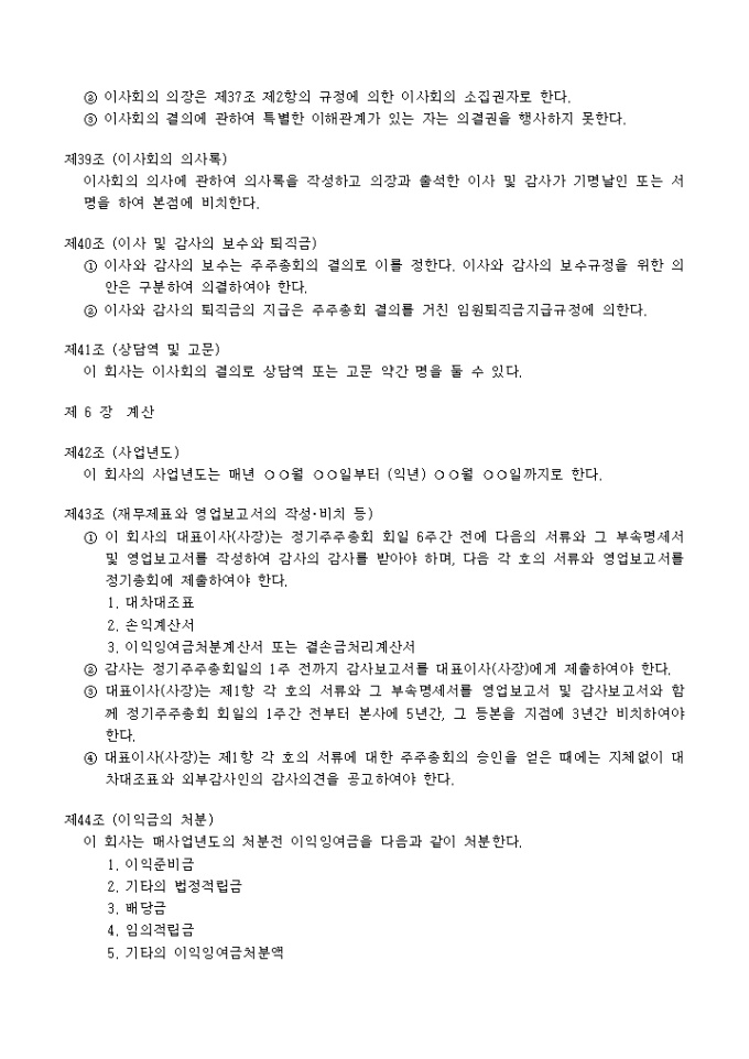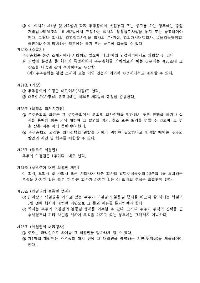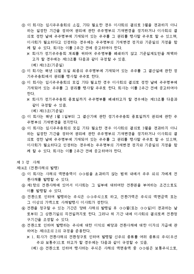9,000원/월이 정관은 한국상장회사협의회에서 작성한 상장회사 표준정관으로 , 정관 작성시 참고로 하면 도움이 될 것입니다. 팁형식의 작성 도우미가 있어 많은 도움이 되실겁니다.