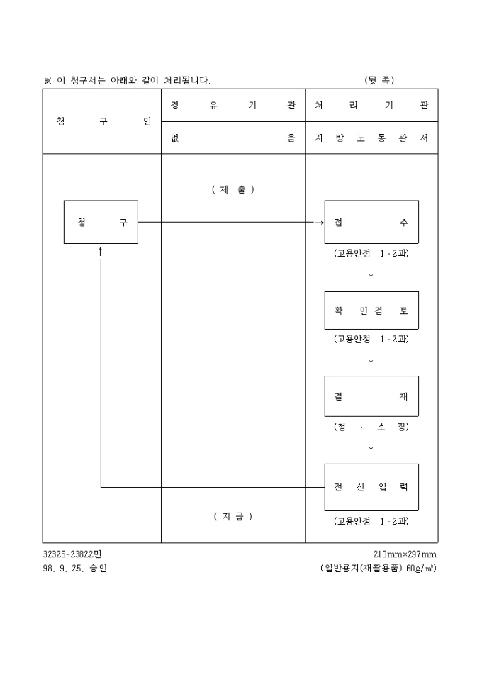 9,000원/월고용보험법시행령 제59조제1항 및 동법시행규칙 제59조제1항의 규정에 의하여 청구하고자 할 때 사용하는 '고용보험 상병급여(출산시)청구서' 양식입니다.