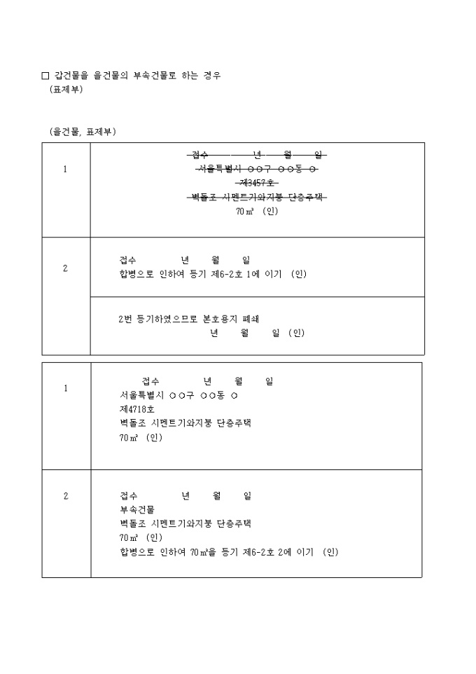 9,000원/월갑건물을 을건물의 부속건물로 하는 경우 입니다. 접수 년 월 일 서울특별시 ○○구 ○○동 ○ 제4718호 벽돌조 시멘트기와지붕 단층주택 70㎡ (인) ...