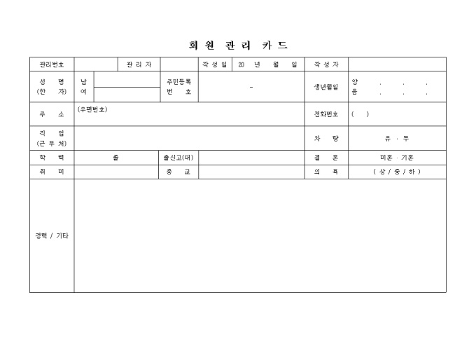 9,000원/월학원이나 기업에서 간단하게 관리할 수 있는 회원관리카드입니다.
