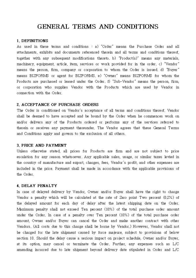9,000원/월General Terms and Conditions 영문으로 된 일반거래 조건 협정서입니다.