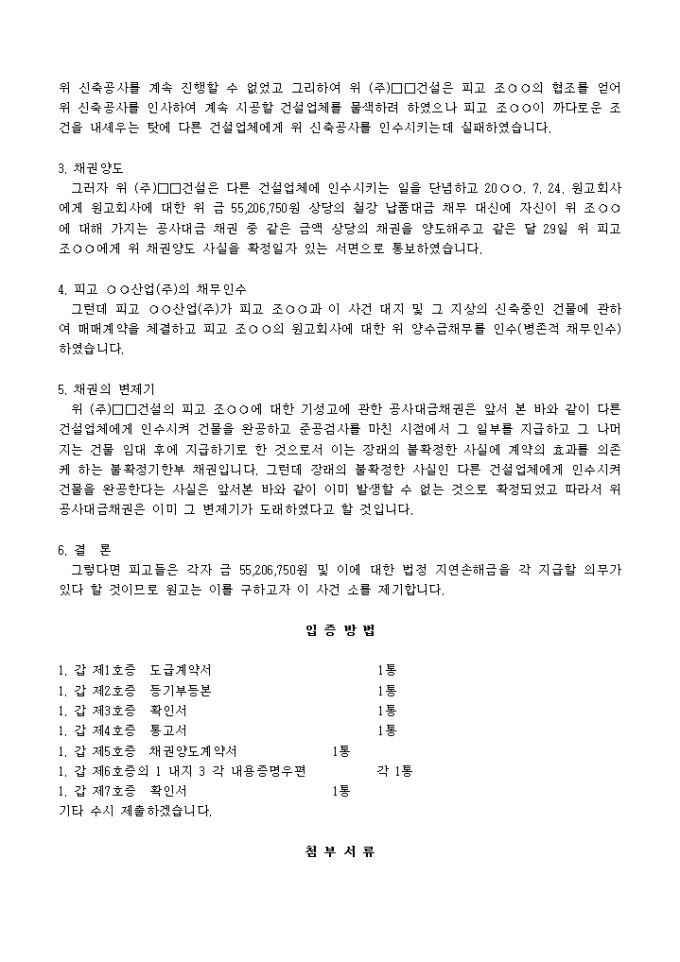 9,000원/월인수채무금청구의 소 청 구 취 지 1. 피고들은 원고에게 각자 금 55, 206, 750원 및 이에 대한 이 사건 소장부본 송달 다음 날부터 다 갚을 때까지 연 2할 5푼의 비율에 의한 금원을 각 지급하라. 2. 소송비용은 피고들의 각 부담으로 한다. 3. 위 제1항은 가집행할 수 있다. 라는 판결을 구합니다.