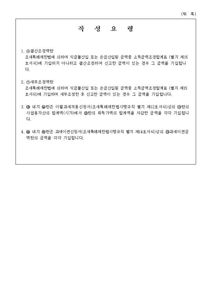 9,000원/월[별지 제8호서식(병)] 공제감면세액및추가납부세액합계표(병) 양식입니다. [작 성 요 령] 1. ⑥결산조정액란 조세특례제한법에 의하여 익금불산입 또는 손금산입된 금액중 소득금액조정합계표 (별지 제15호서식)에 기입하지 아니하고 결산조정하여 신고한 금액이 있는 경우 그 금액을 기입합니다. 2. ⑦세무조정액란 조세특례제한법에 의하여 익금불산입 또는 손금산입된 금액중 소득금액조정합계표 (별지 제15호서식)에 기입하여 세무조정한 후 신고한 금액이 있는 경우 그 금액을 기입합니다. ...