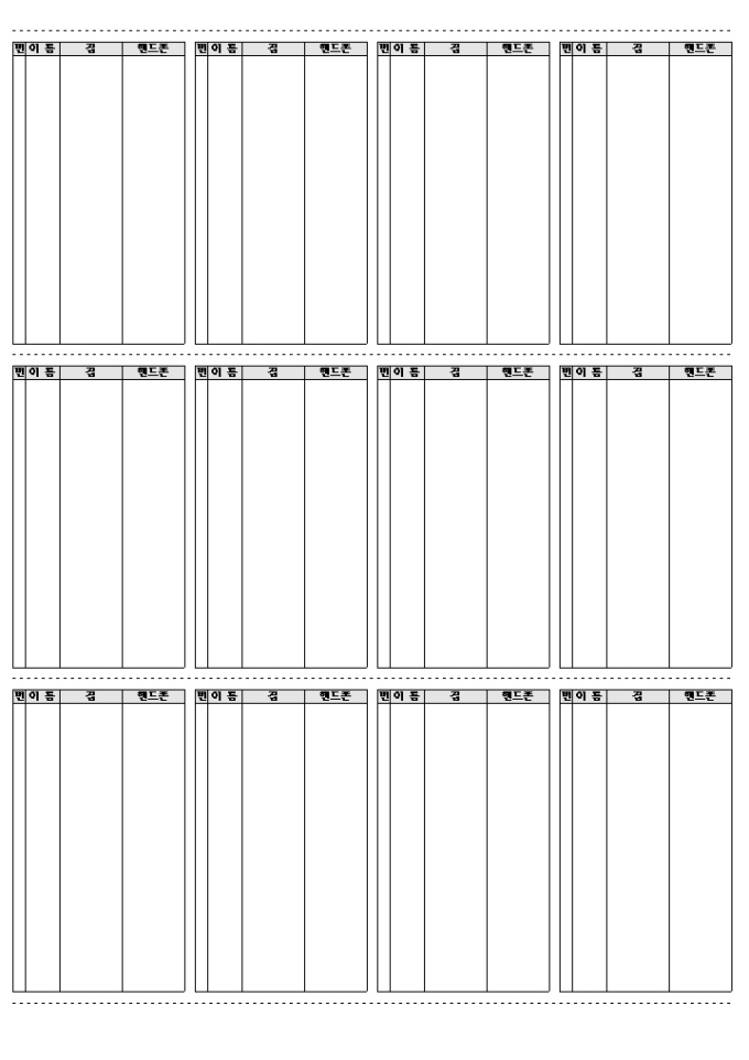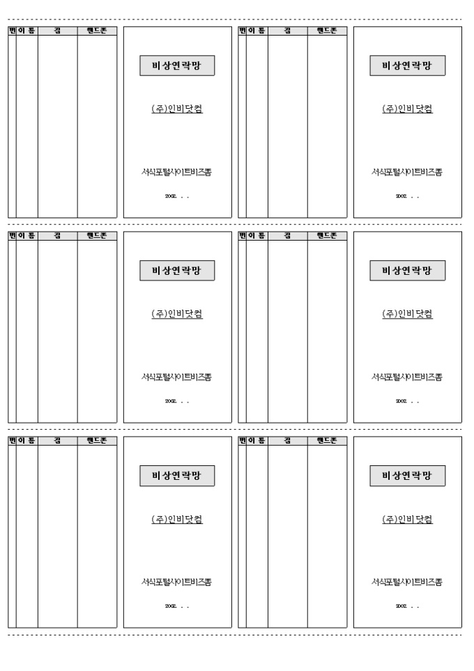 9,000원/월비상연락망 양면으로 입력을 하셔서 사용 하실 수 있습니다.