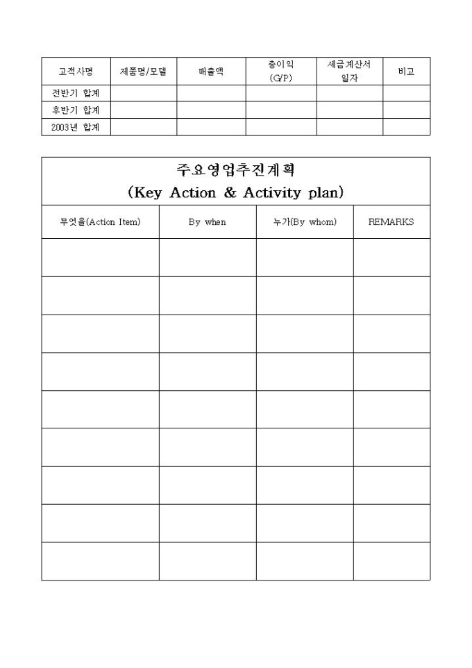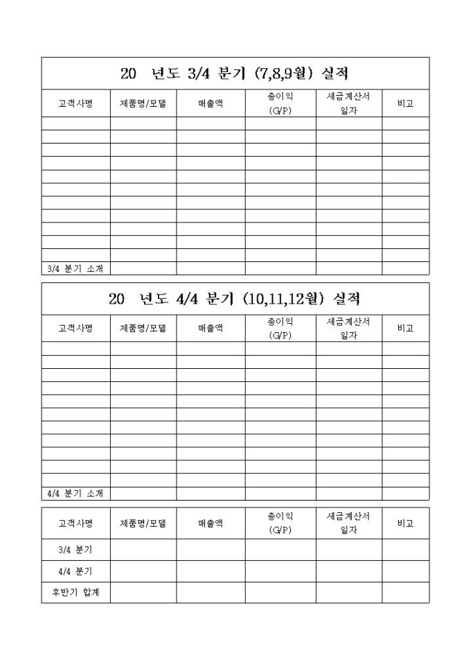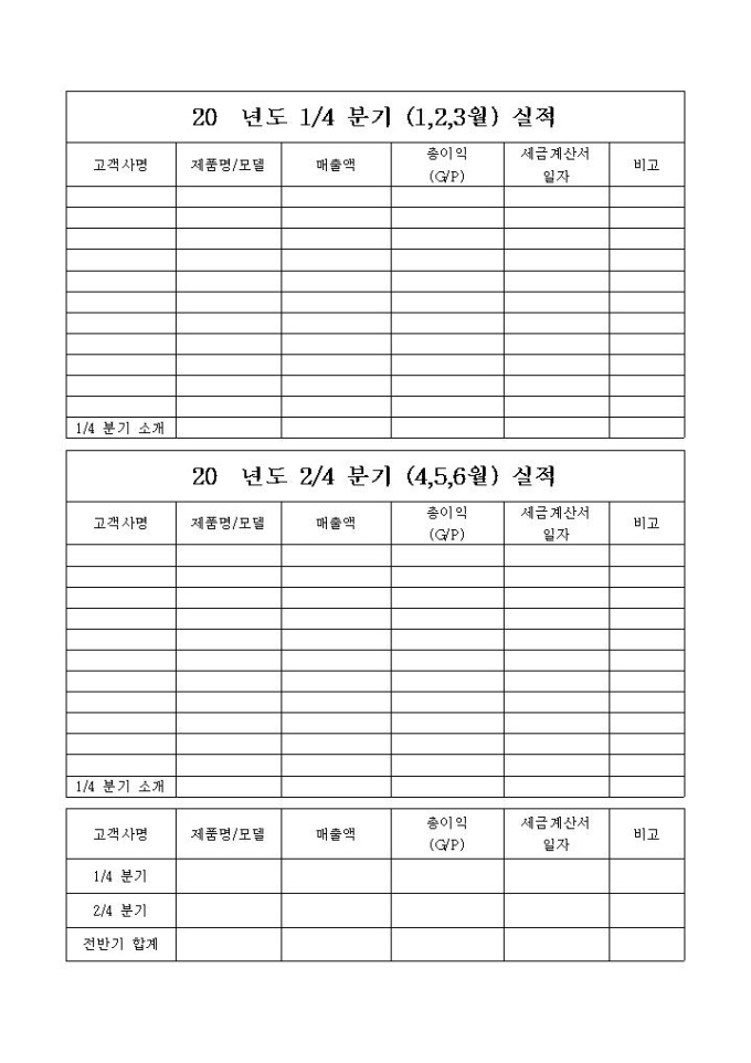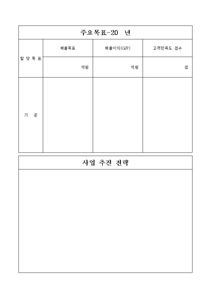 9,000원/월년도별 영업계획서(영업담당별) 양식입니다. 분기별 세부 일정계획및 주요영업추진계획등 구성이 알찬 영업계획서 입니다.