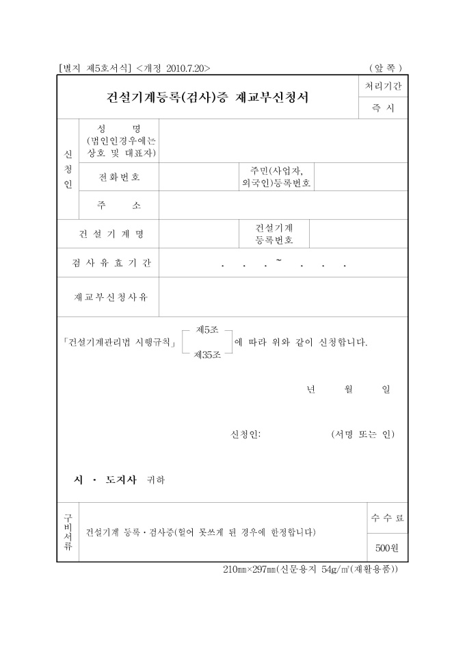 9,000원/월건설업등록증(등록수첩)재교부신청서 입니다.
