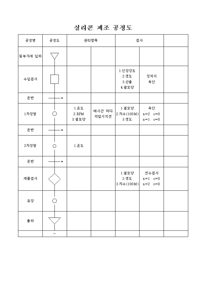 9,000원/월공정별 공정도,관리항복,검사를 기록한 실리콘 제조 공정도입니다.