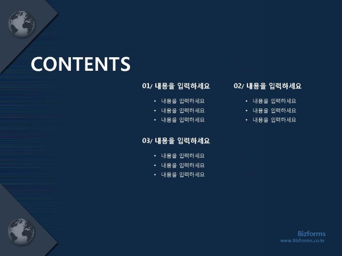 파워포인트 배경(지구본)입니다. 표지, 목차, 내지, 끝표지로 구성되어 있습니다.