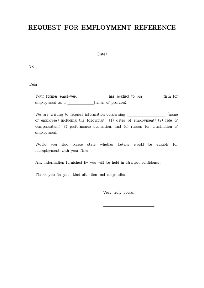 9,000원/월취업의뢰 영문 서식 예제입니다.... Dear: .............. Any information furnished by you will be held in strictest confidence. Thank you for your kind attention and cooperation. Very truly yours, ___________________________