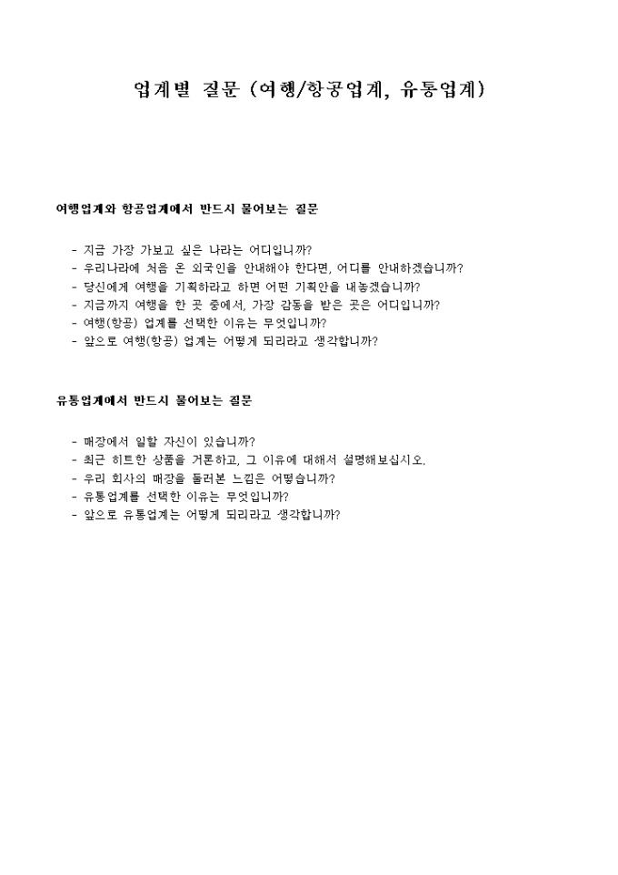 9,000원/월면접질문지입니다. 크게 1. 여행업계와 항공업계에서 반드시 물어보는 질문 2. 유통업계에서 반드시 물어보는 질문 으로 구성되어 있습니다.