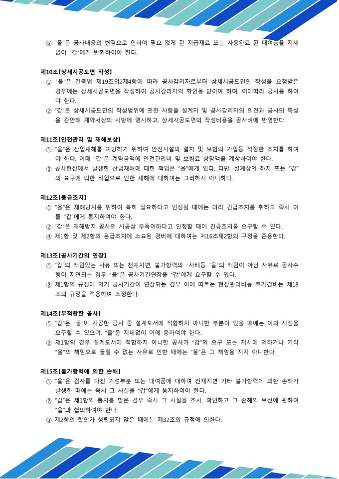 계약부터 준공까지 모든 단계를 다루는 34개 조항