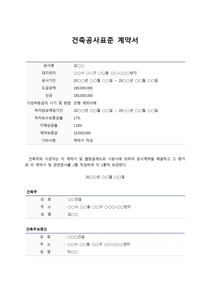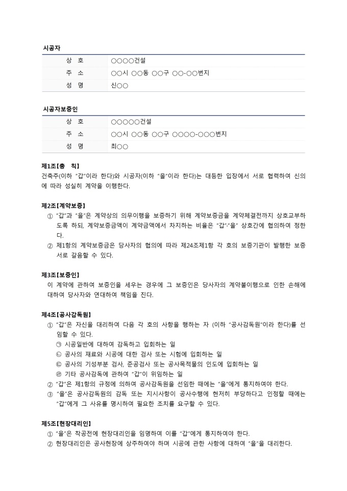 • 계약서 샘플 > 공사 > 공사
