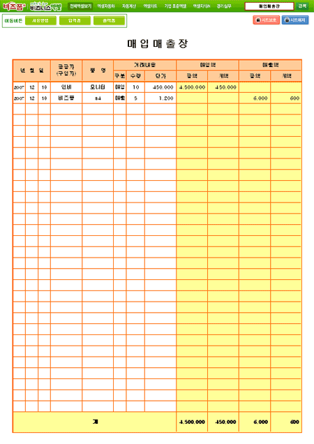 매입매출 자금관리 통합 프로그램(거래처관리, 목록관리, 매입지급내역, 매출수금내역, 일계표, 월계표, 년계표, 총계정원장, 거래처현황, 거래처원장, 계정과목원장)