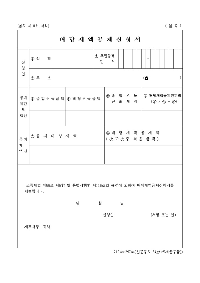 9,000원/월소득세법 제56조 제5항 및 동법시행령 제116조의 규정에 의하여 배당세액공제신청할때 사용합니다.