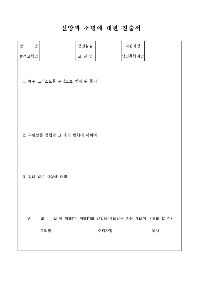 9,000원/월신앙과 소명에 대한 진술서 양식 입니다.