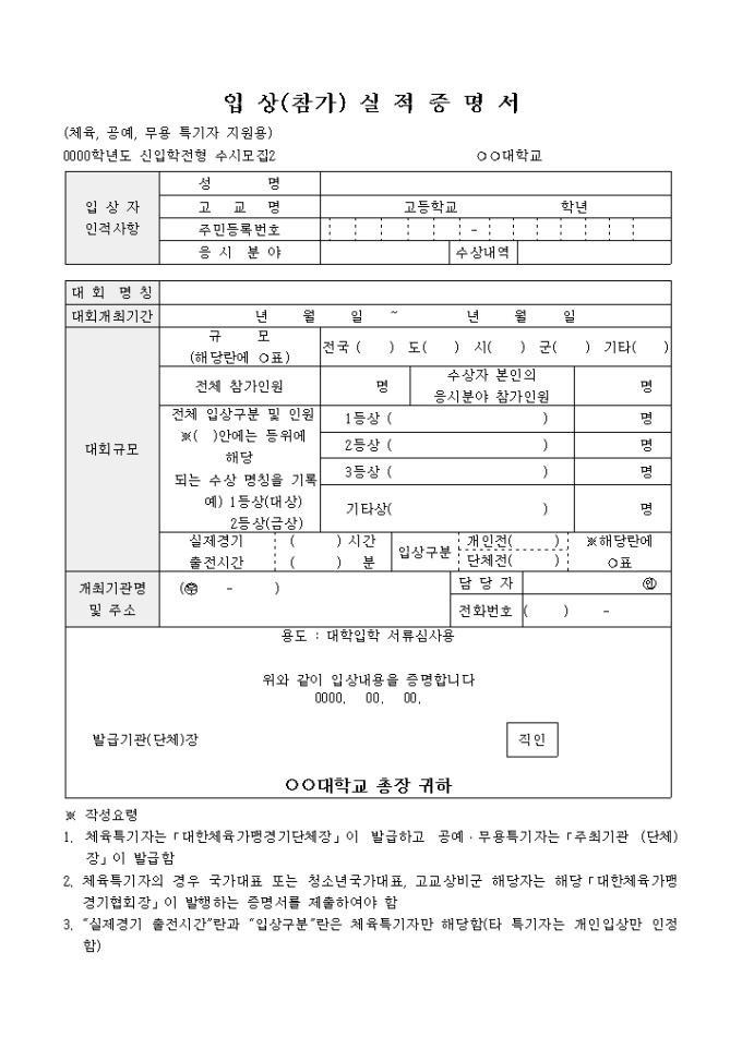 9,000원/월입상 실적 증명서 양식입니다. 입상자 인적사항, 대회규모, 개최기관명 및 주소를 기재합니다.