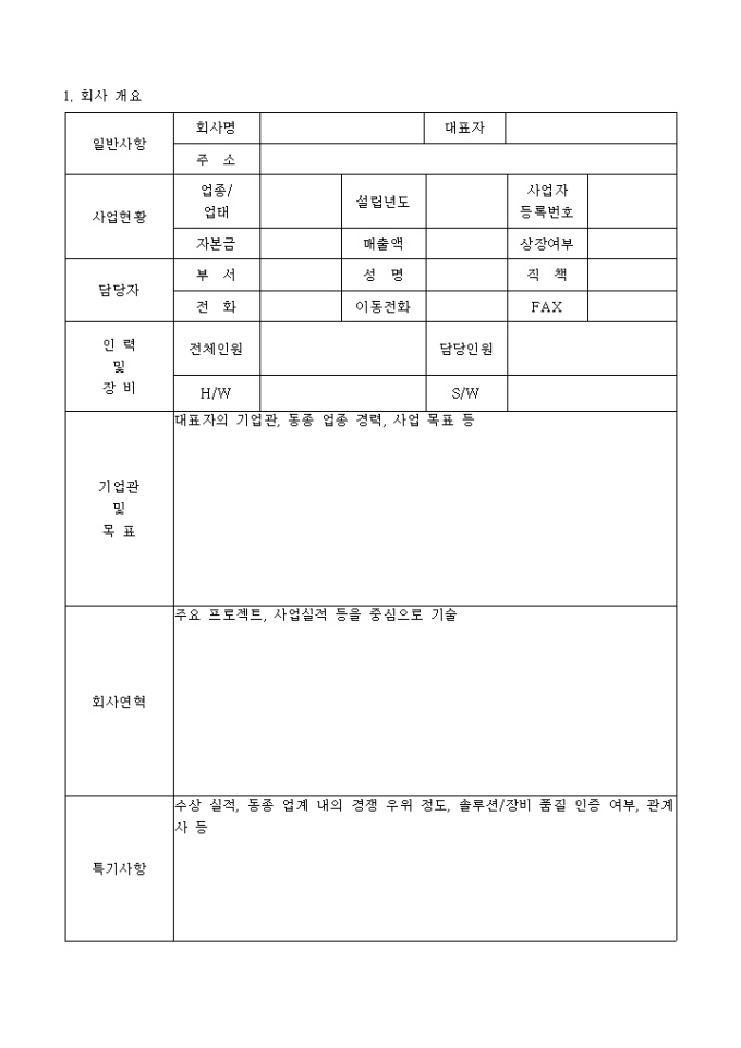 9,000원/월아래의 항목을 기재하는 사업협력제안서입니다. 1.회사개요 2.인력 및 조직구성 3.레퍼런스 사이트현황 4.장비 및 솔루션 보유 현황 5.사업 예측 및 운영 계획