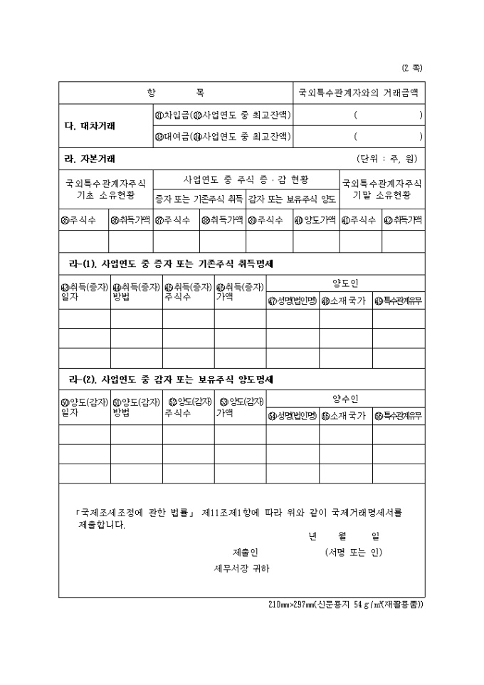 9,000원/월국제조세조정에관한법률 제11조제1항의 규정에 의한 제8호 국제거래명세서입니다.(2009.3.27. 개정)