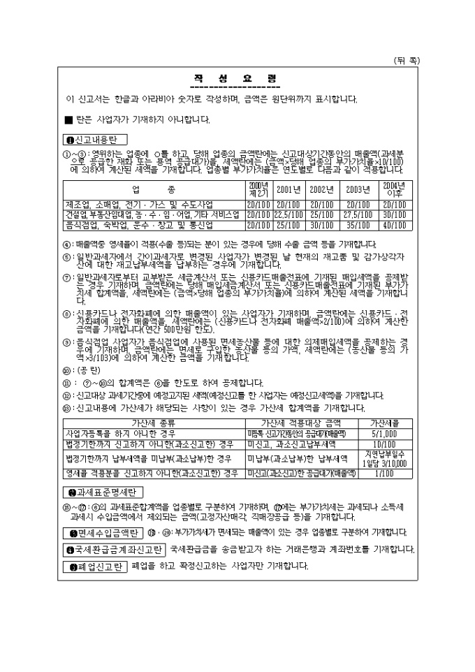 9,000원/월부가가치세법시행령 제75조제2항·제5항 및 국세기본법 제45조의3의 규정에 의하여 간이과세자부가기치세 신고하는 양식입니다.