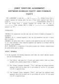 9,000원/월THIS AGREEMENT is made the _____ day of __________, 19__, between Korean Party, a company organized and existing under the laws of Korea whose registered head office is located at _______________________________________________, Korea(hereinafter referred to as 'KP') and Foreign Party, a company organized and existing under the laws of _______________ whose principal office is located at ________________________(hereinafter referred to as 'FP'). JOINT VENTURE AGREEMENT