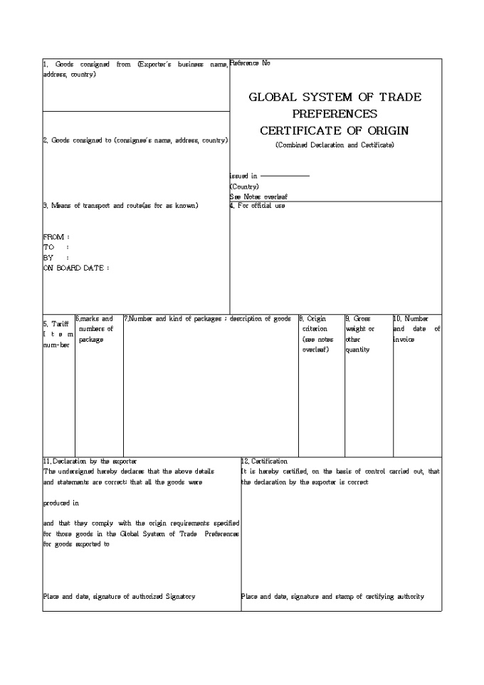 9,000원/월GLOBAL SYSTEM OF TRADE PREFERENCES CERTIFICATE OF ORIGIN