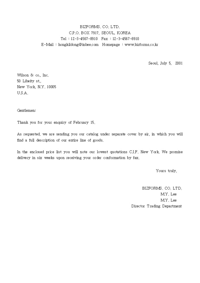 9,000원/월Thank you for your enquiry of February 15. 샘플,가격표 발송2(영문)