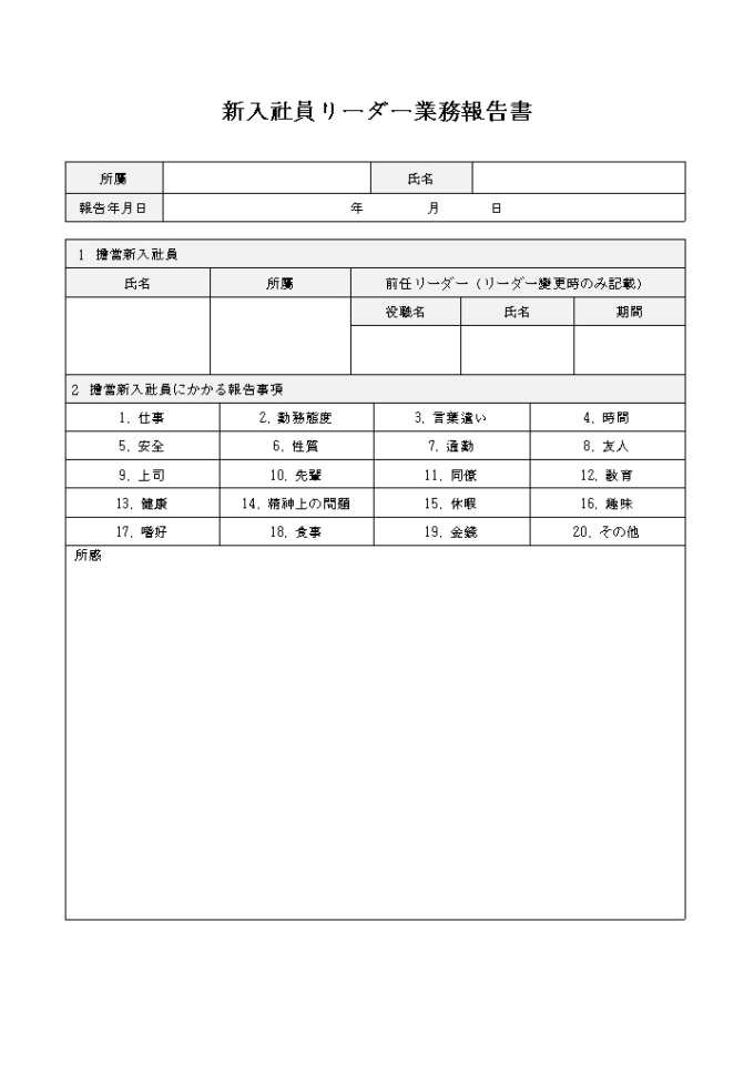 9,000원/월1 擔當新入社員 2 擔當新入社員にかかる報告事項 신입사원리더제도보고서(일어) 양식입니다.