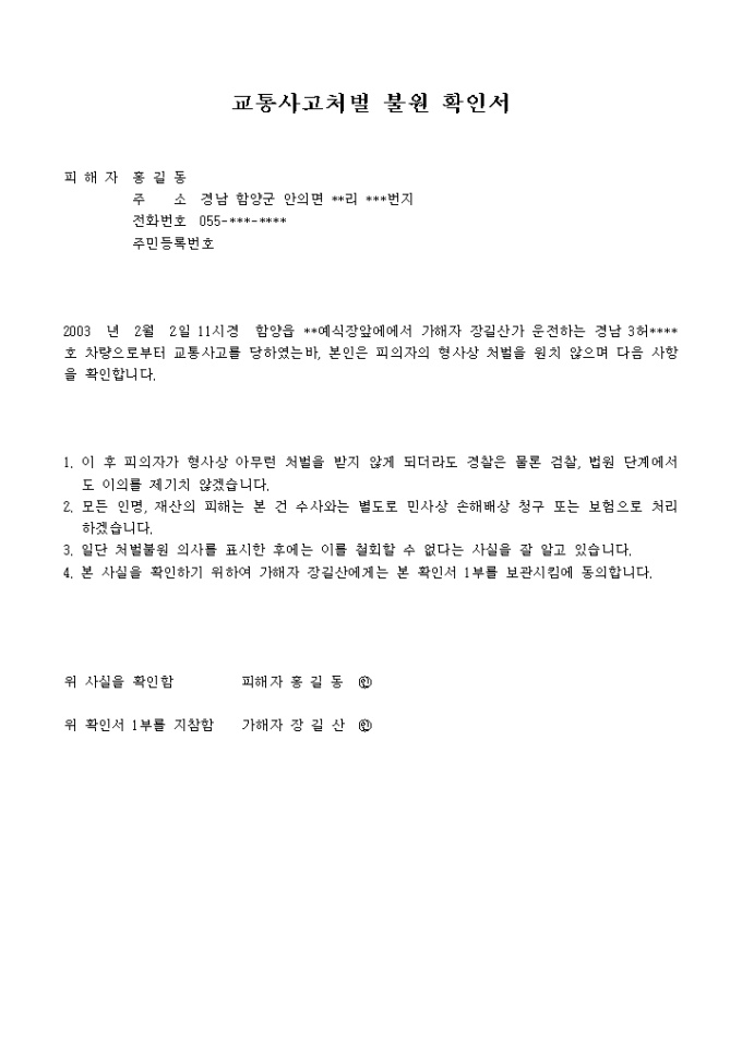 9,000원/월교통사고에 대한 처벌을 원치않을때 제출하는 양식입니다.