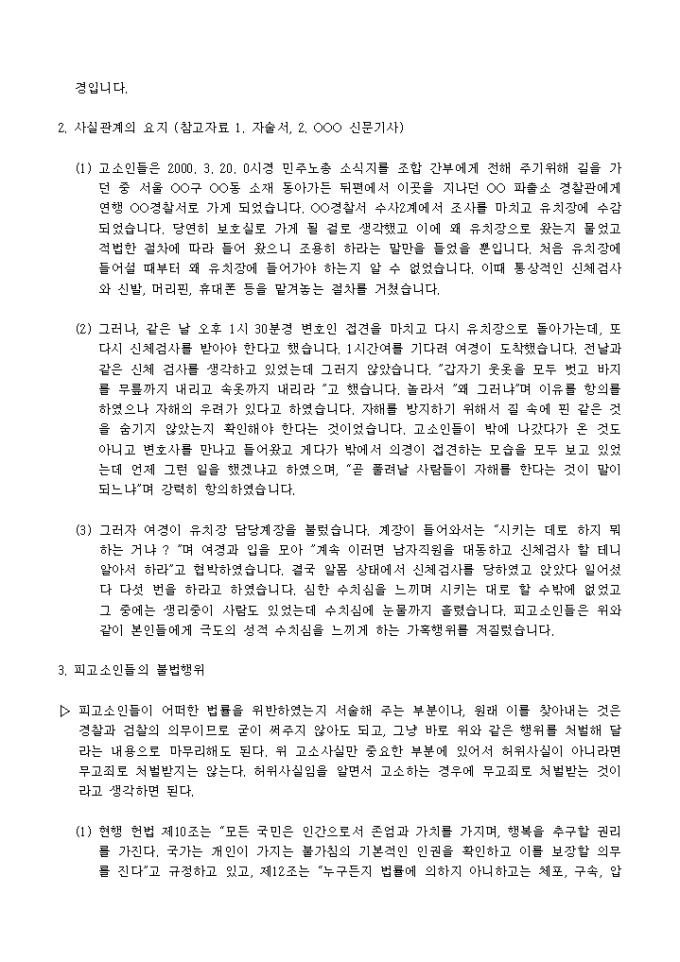 9,000원/월▷ 고소인이 여러 명인 경우에는 번호를 붙이고, 전화연락처와 연락이 가능한 주소를 기재하면 되고 주소는 반드시 주민등록이 된 곳일 필요는 없다. ▷ 피고소인도 고소인과 동일하게 기재하면 되고, 아무것도 모르는 경우에는 외관상 특징 등으로 기재해도 된다. 원래 경찰과 검찰이 범인을 찾아내는 것이기 때문이다. 경찰이나 공인인 경우에는 굳이 주소나 연락처를 기재할 필요는 없을 것이다.