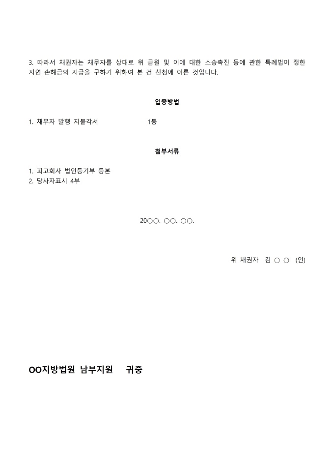 지급명령신청서 작성예(채무자 발행 지불각서)