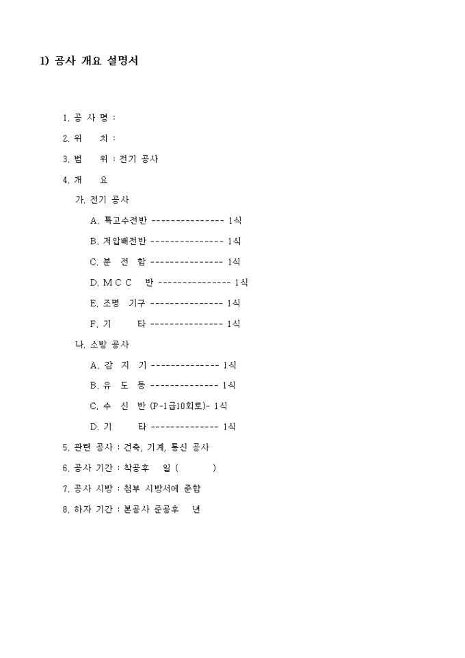 9,000원/월안전 작업 계획서 양식입니다. 1. 공사개요설명서 2. 안전 관리 조직 및 체제 3. 안전 교육 실시 계획 4. 투입 장비 및 안전 장구 현황 5. 안전 관리 및 안전 작업 시행 계획 6. 기타 안전활동 계획
