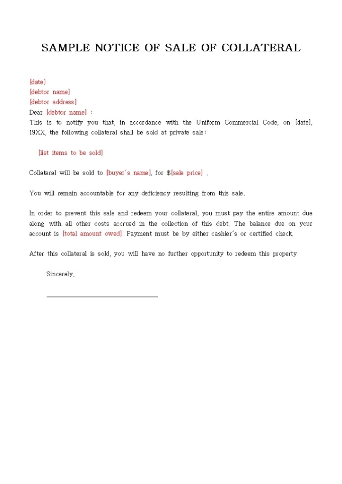 9,000원/월영문으로 작성된 담보물 판매 통지서입니다.