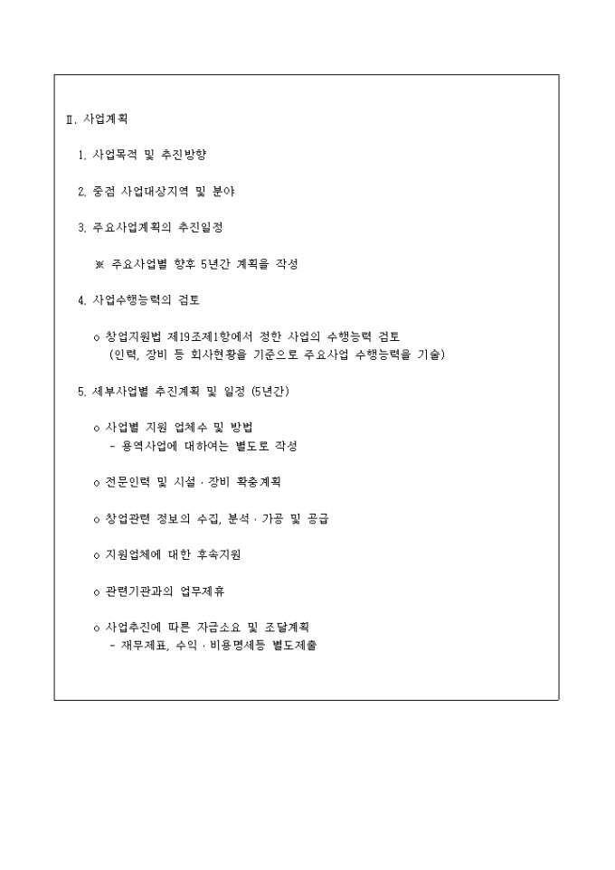 9,000원/월중소기업상담회사 사업계획서에 기재되어야 할 부분에 대한 간략한 항목이 나와있는 양식입니다.