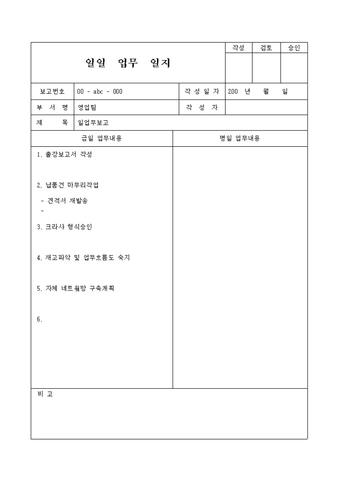 9,000원/월하루에 작업한 내용을 기재하는 일일 업무일지 양식입니다.