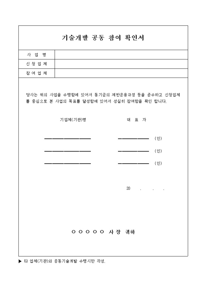 9,000원/월사업을 수행함에 있어서 동기금의 제반운용규정 등을 준수하고 신청업체를 중심으로 본 사업의 목표를 달성함에 있어서 성실히 참여함을 확인 할 때 사용하는 양식입니다.