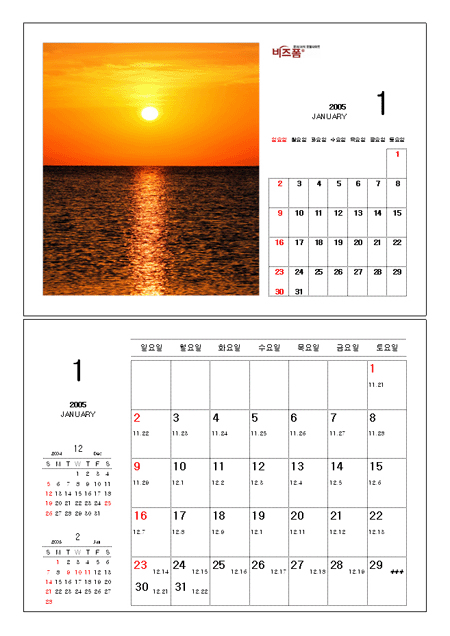 9,000원/월2005년 달력(월별 일정) 입니다. 고급스러운 배경과 함께 월별 기념일 및 스케줄을 기입하시기 편하게 구성되어 있습니다. 월별 간편 스케줄을 관리하실때 유용한 양식입니다.