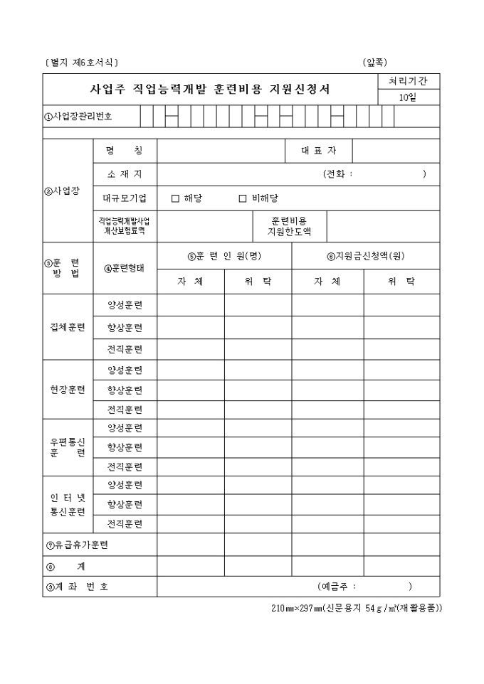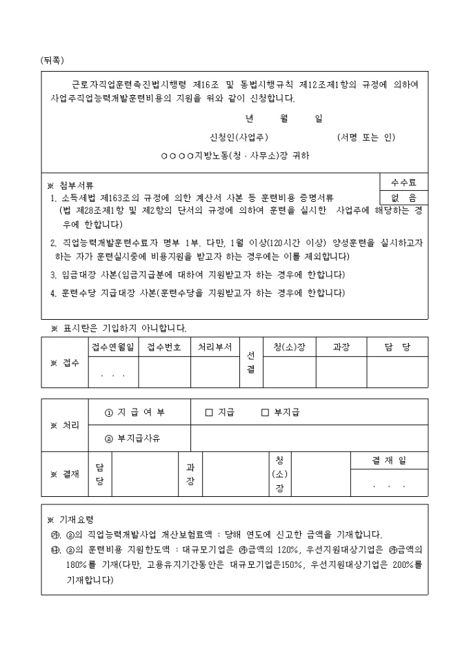 9,000원/월사업주 직업능력개발 훈련비용 지원신청서