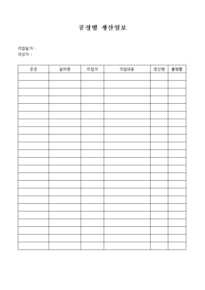 9,000원/월공정별 생산일보로 공정,설비명,작업자,작업내용,생산량,불량율등을 기록합니다.
