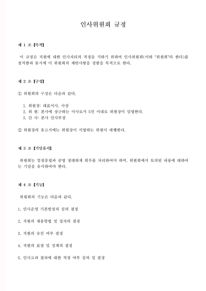 9,000원/월회사업무관련규정집모음(사규,조직규정) 인사및노무