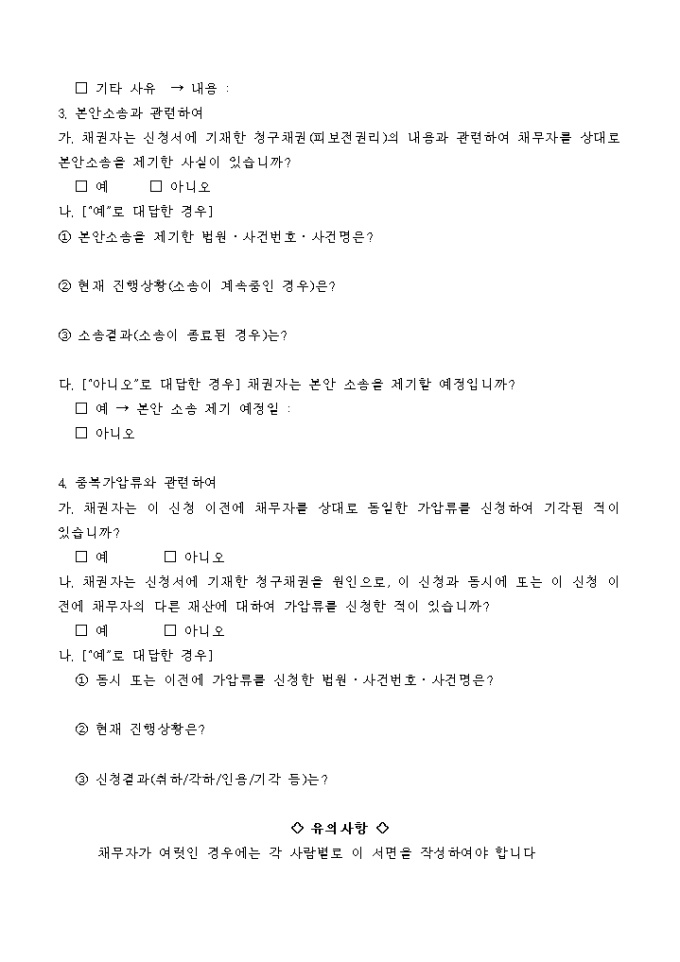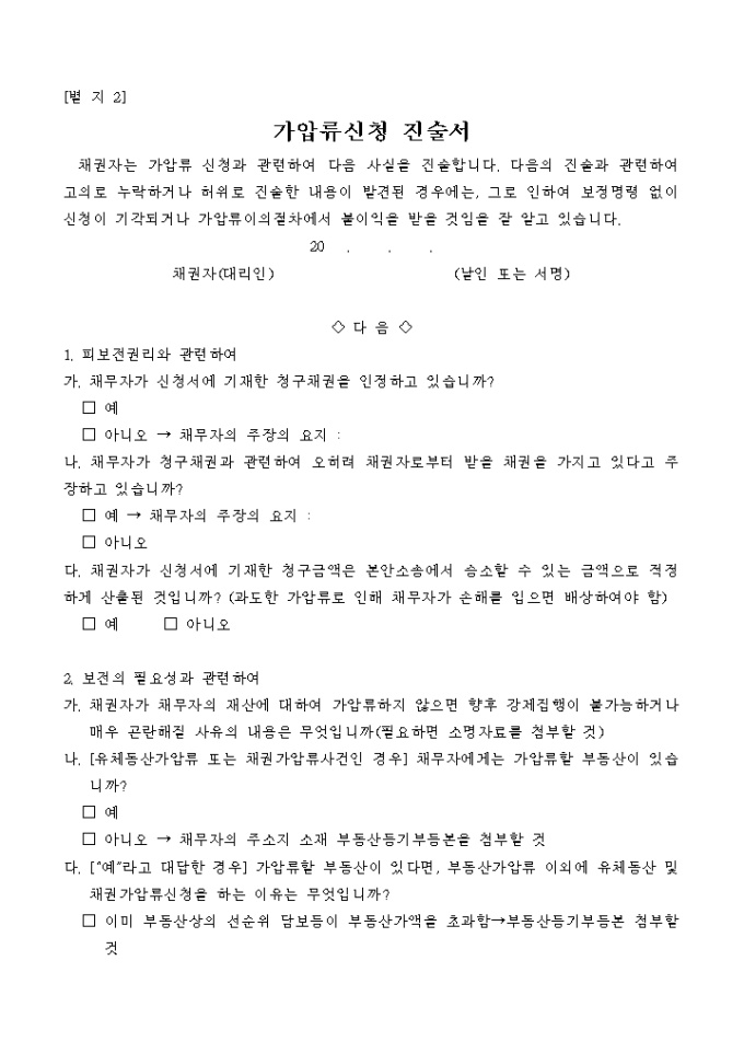 9,000원/월가압류 신청시 함께 제출해야하는 진술서 입니다.
