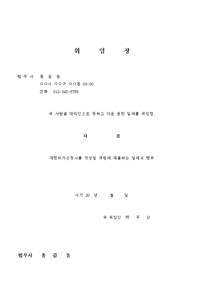 9,000원/월개명허가 신청시 사용하는 위임장입니다.