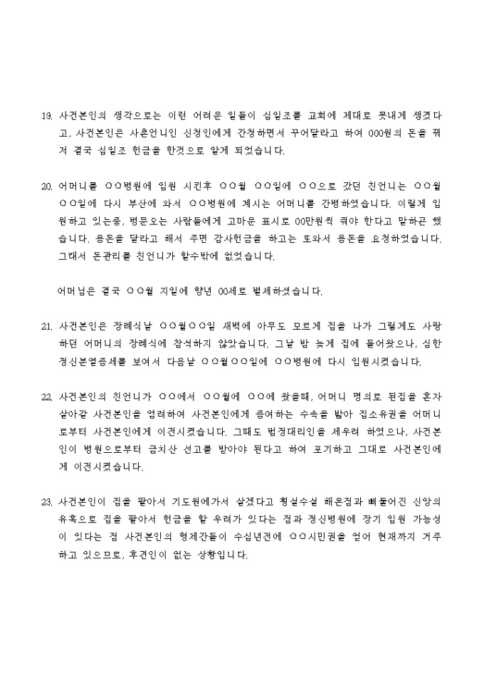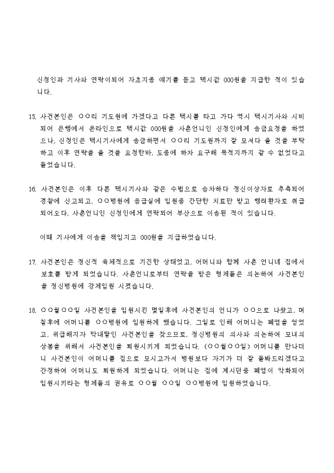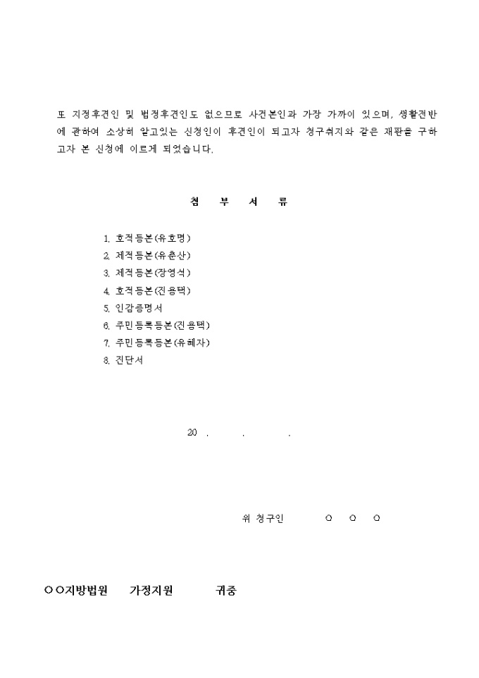 9,000원/월금치산자(성인)인 사건 본인의 후견인의 선임을 청구하는 서식입니다.